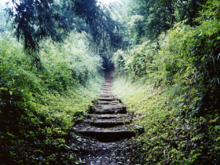竪堀−岩櫃城にはこのような竪堀が縦横無尽に廻らされており通路として使われていたようです。 本来ならここを登って行くのだが... |