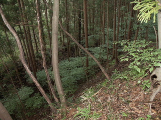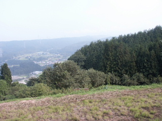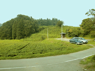 「城の口」から見た天狗丸 天狗丸とは、牙城部大手口の前面に広がる出丸のことです。 |