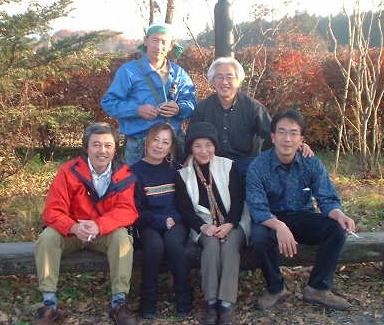 当日応援に来られたバンドのメンバーと下段右より二人目が後援会長の越智先生、上段右側が陶芸家の橋本 誠先生、左が支部長です。 |