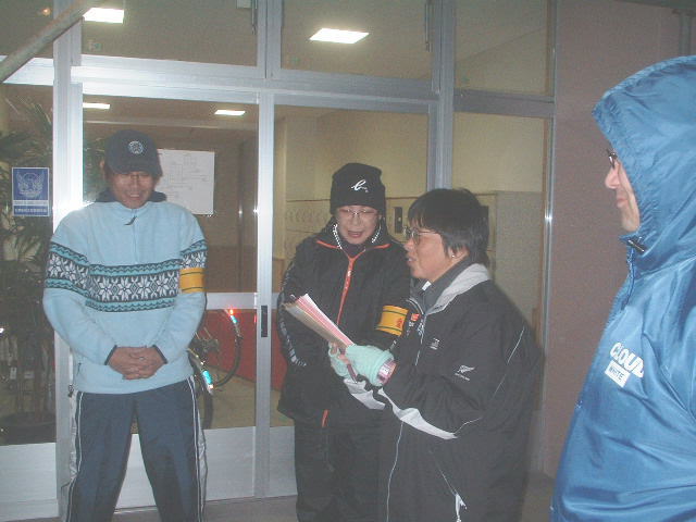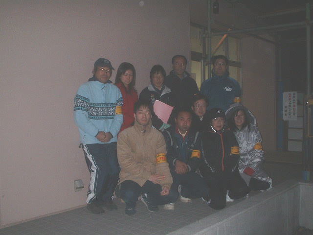 ![]() 今まさに出発前の記念写真です。この日はとても寒く、全員防寒着に巳を包み、寒空の中を、一声運動に出かけました。 みんな左腕に愛の一声運動の腕章をつけています。 |