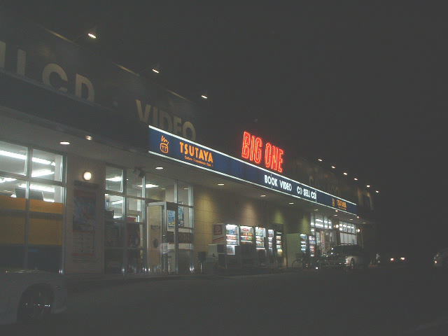 ここはツタヤさんというレンタルビデオやさんです。この日はお店の外には誰もいませんでした。気温が暑いうちは外で若い子らが地べたに座って溜まっています。 |
