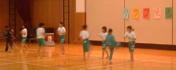 活動は、今年で5年目になります。わずか10数名のクラブですが皆元気に活動しました。授業開始当初はみんな恥ずかしそうに小さい気合で基本を行っていましたが、慣れるにしたがって大きな気合が出せるようになりました。年間15回くらいの授業でしたが、最後は団体演武を作って3年生以上の生徒の前で披露しました。一部の稽古と発表の様子です。